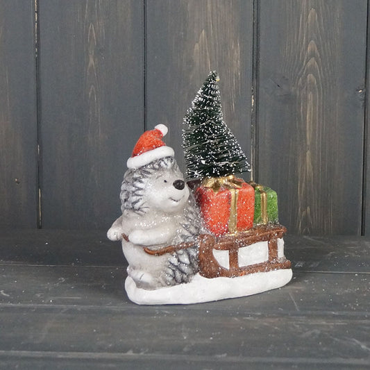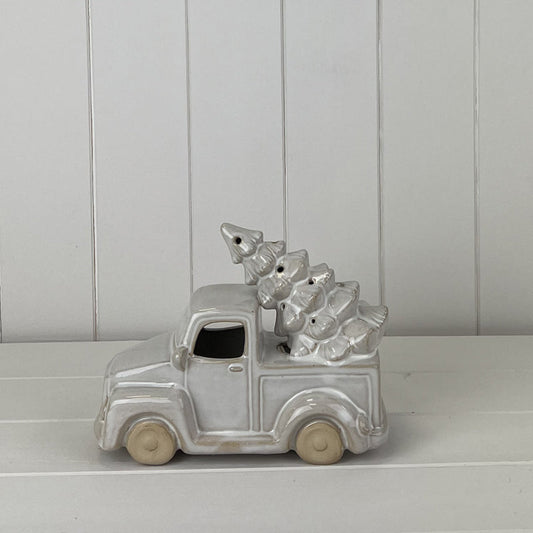 Glazed Ceramic Christmas Tree Truck Ornament With LED