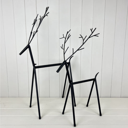 Black Metal Set Of Two Reindeer Decorations