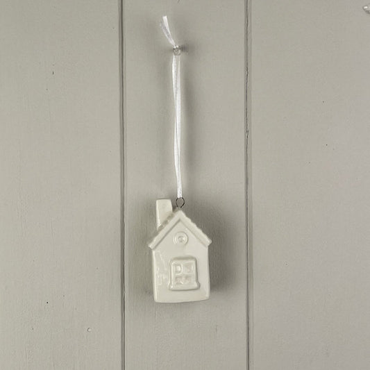 Glazed Ceramic Train Ornament With Textured Detail And LED