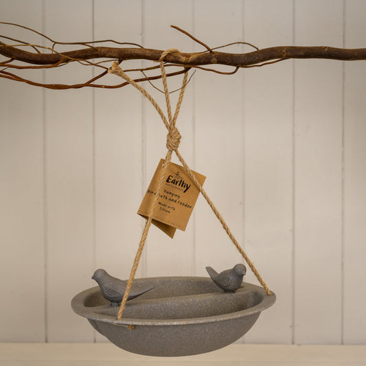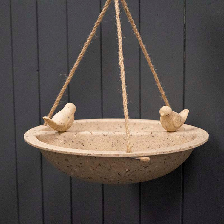 2-Tone Cream/Grey Hanging Bird Feeder - Bamboo
