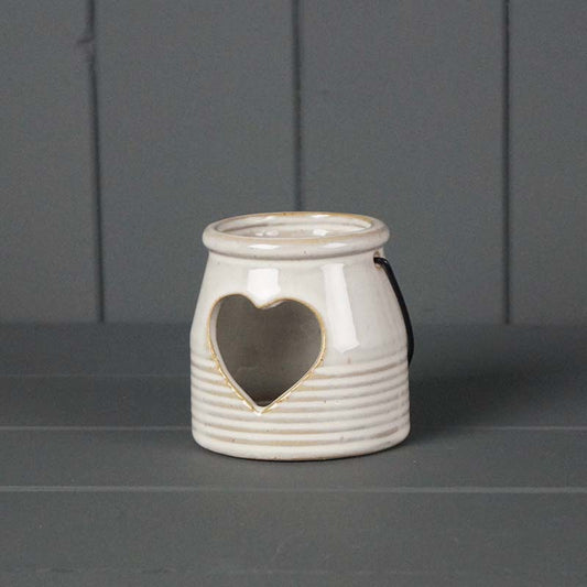 Glazed Ceramic Wax Oil Burner With Heart Detail