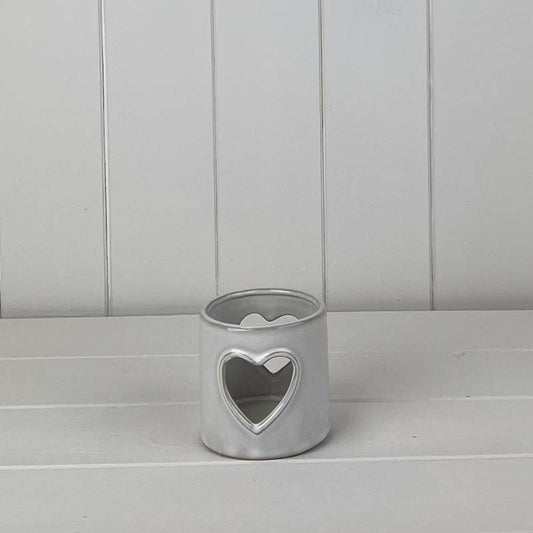 Glazed Ceramic Tealight Holder With Heart/Star Cut-Out Detail