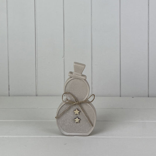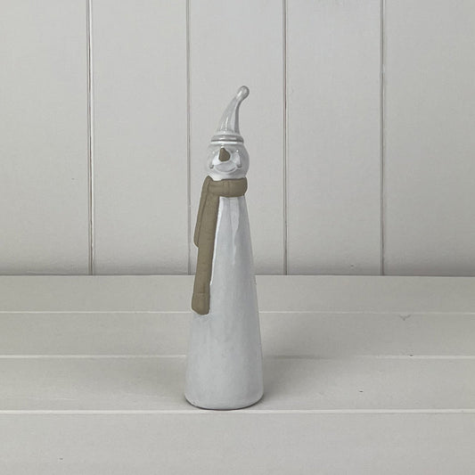 Glazed Ceramic Tall Snowman Ornament With Textured Detail