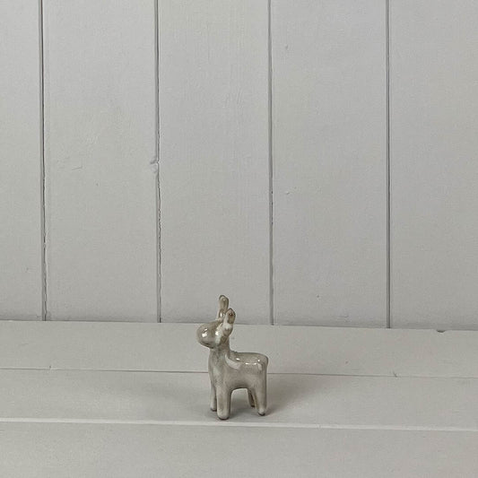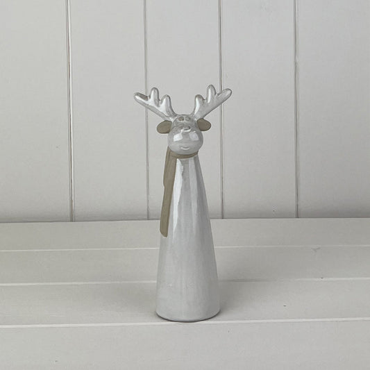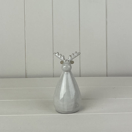 Glazed Ceramic Tall Reindeer Ornament With Texture Detail
