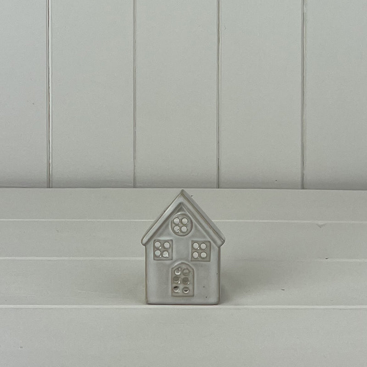 White/Wood Grain Effect Ceramic House Tealight Holder