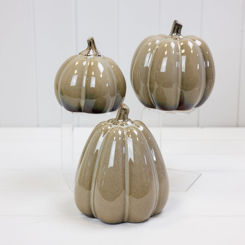 Experience the warmth and charm of our Brown Ceramic Pumpkin, expertly crafted with a lustrous glazed finish. Perfectly embodying the beauty of autumn, these pumpkins will add a touch of rustic elegance to your home decor.