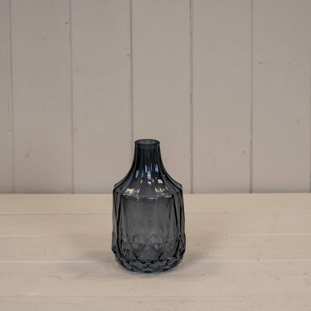 Sleek and sophisticated, this cool grey glass bottle brings understated elegance to any space. Its versatile design works beautifully as a decorative accent or functional vessel, adding a touch of contemporary style to shelves, countertops, or table arrangements.