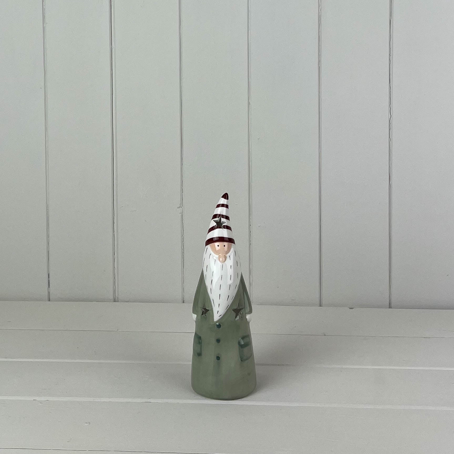 Enhance your holiday décor with the charming Light Green/White Ceramic Gonk Decoration. This delightful piece features a soft light green body accented by crisp white details, creating a playful yet stylish addition to your festive display. Embrace the whimsy and warmth of the season with this endearing Gonk that brings character and holiday spirit wherever it’s placed.