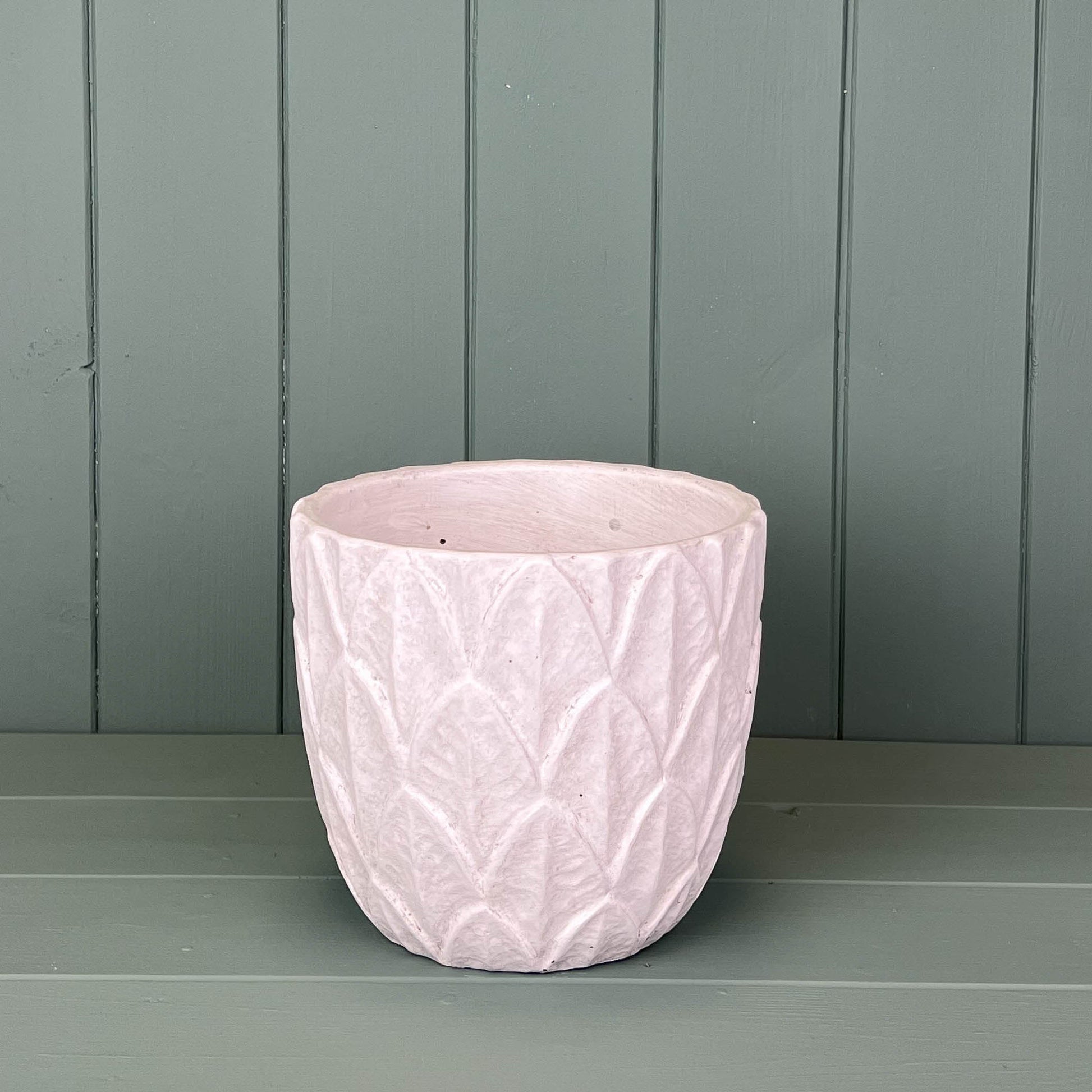 Circular cement planter in crisp white finish. This versatile container adds a clean, modern touch to any indoor or outdoor space while providing a durable home for your favorite plants.